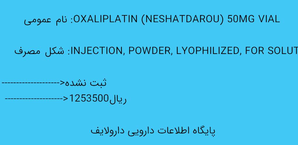 | oxaliplatin (neshatdarou) 50mg vial | oxaliplatin injection, powder, lyophilized, for solution parenteral 50 mg | injection, powder, lyophilized, for solution | parenteral |