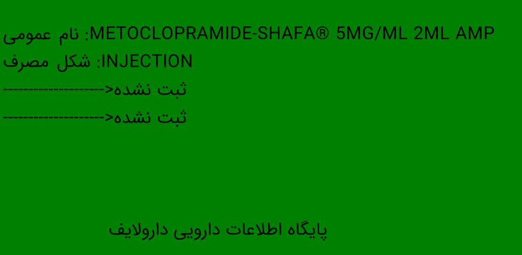 | metoclopramide-shafa® 5mg/ml 2ml amp | metoclopramide injection parenteral 5 mg/1ml 2milliliter | injection | parenteral |